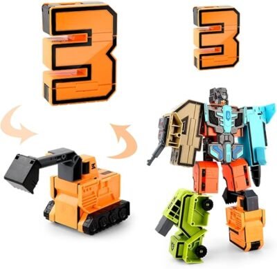 - Numbers 0-4 and 5-9 combine individually into larger transforming robots, encouraging imaginative play and problem-solving.
